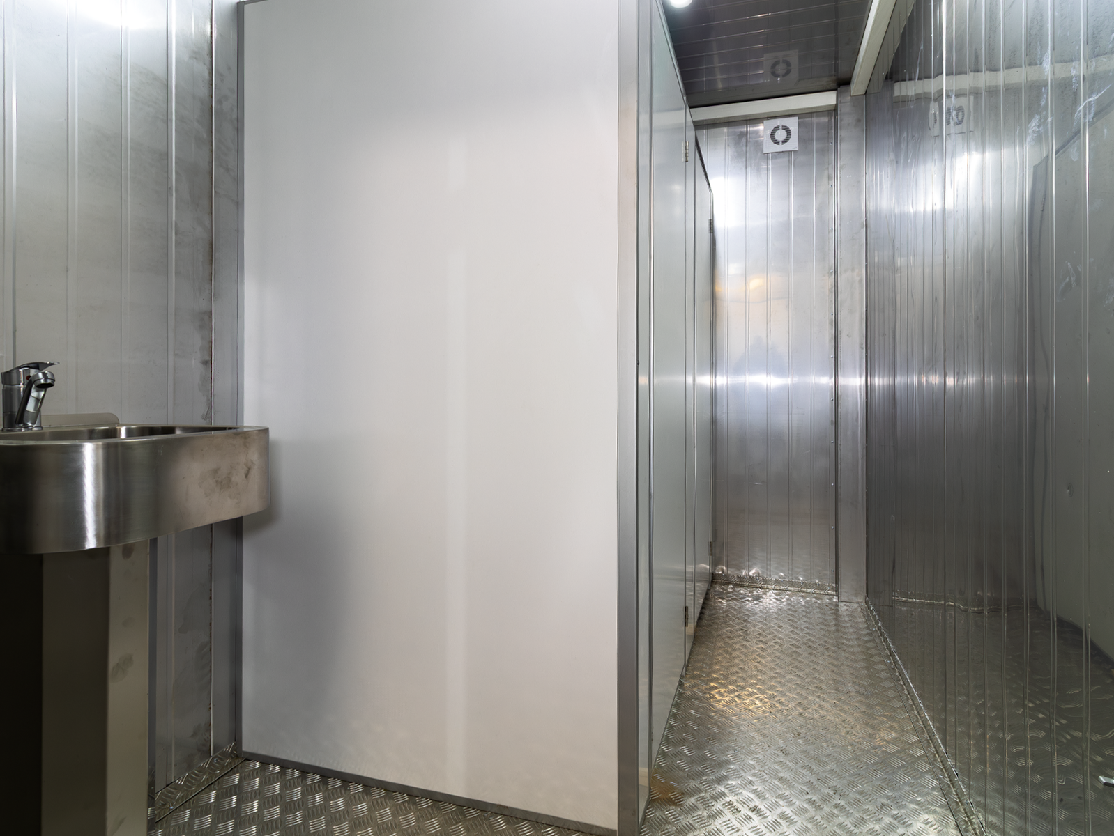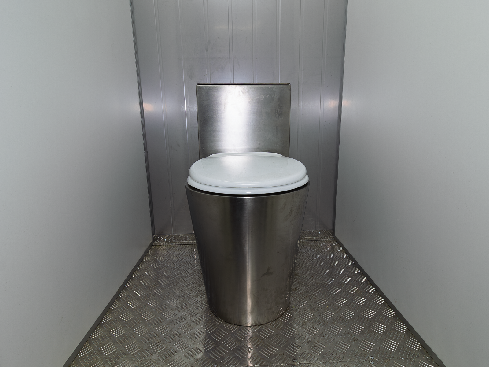 Так же в антивандальных туалетных блок-контейнерах могут применяться отделочные материалы повышенной прочности и износоустойчивости: рифлёный металлический лист, нержавеющая сталь. Входные и внутренние двери так же выполнены из двухлистового металла повышенной прочности.
